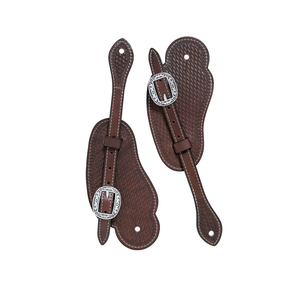 - Western spur straps with a stamped basketweave design promotes a unique look