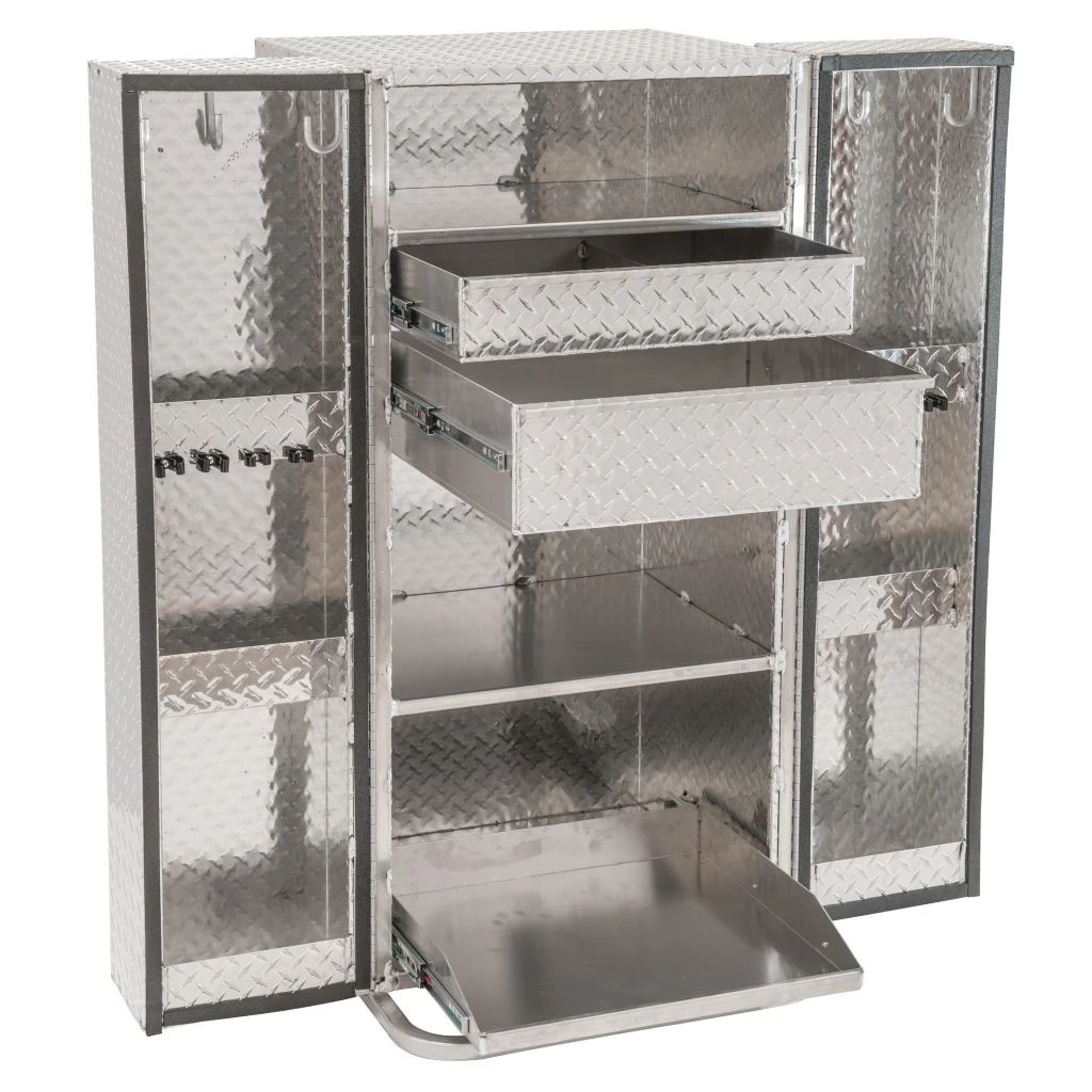 | Features | Each door opens separately to reveal shelves for liquids and aerosols |