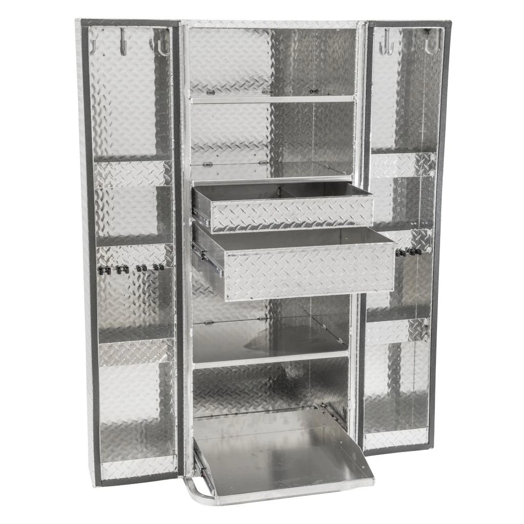 - Pullout bottom tray on the livestock tack box makes it easy to store and access