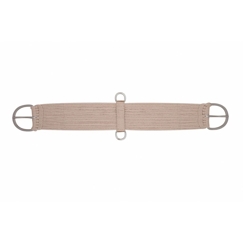 Constructed from a comfortable mohair blend, this cinch features flat stainless steel buckles for a closer fit and stainless steel dees for tie down and back cinch attachment. Brown center accents. Horse size. 35-2360