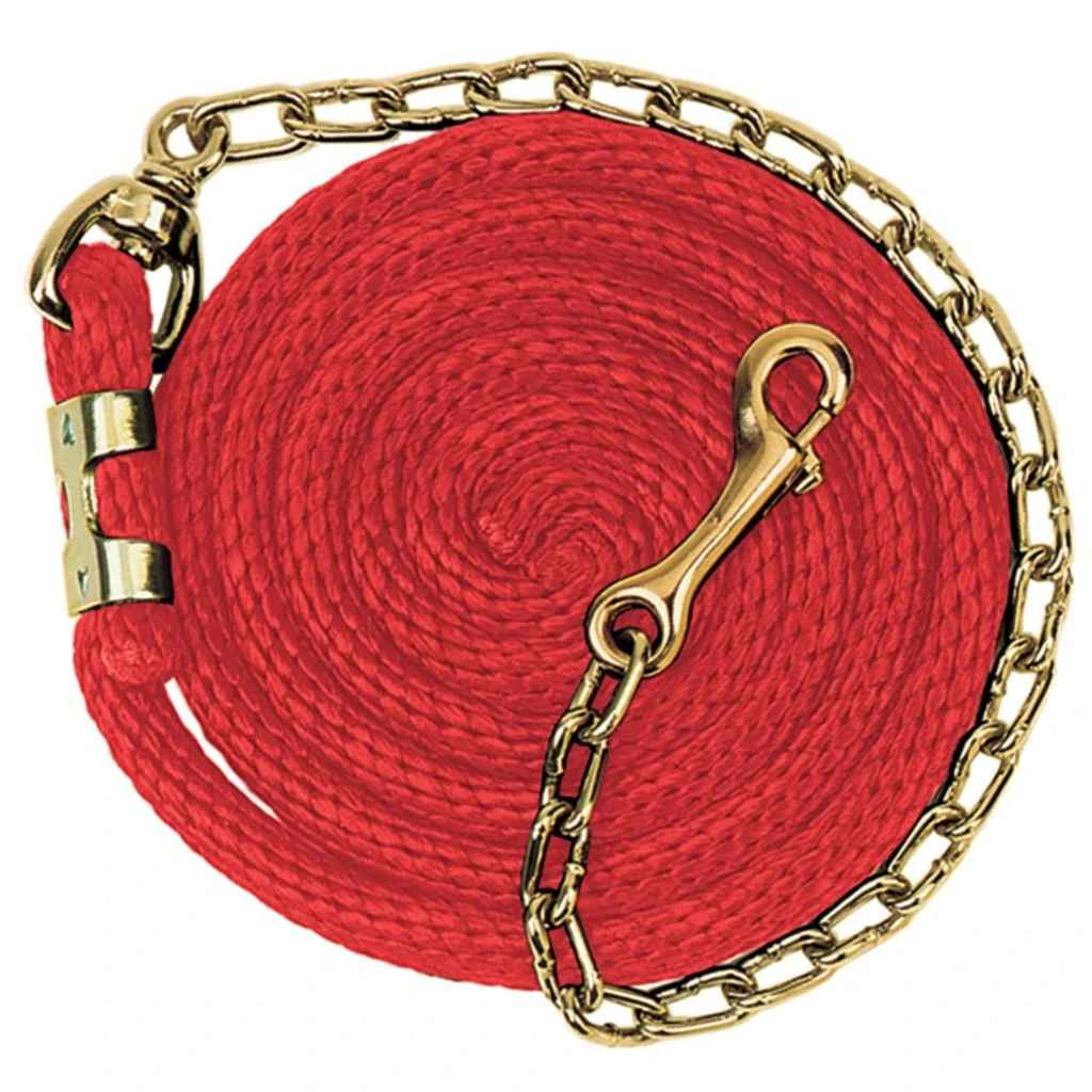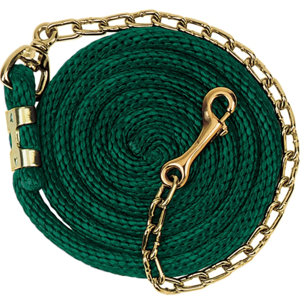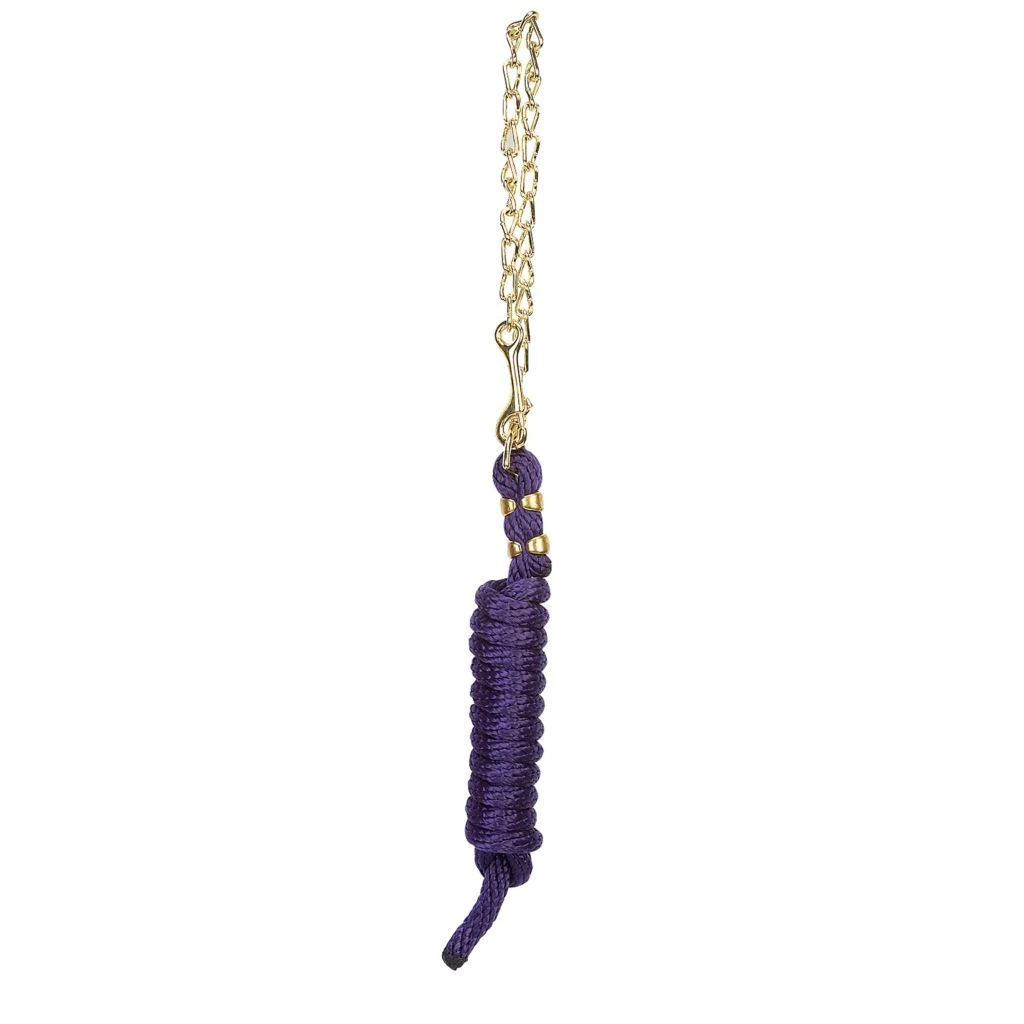 - Poly lead rope features a brass plated swivel chain