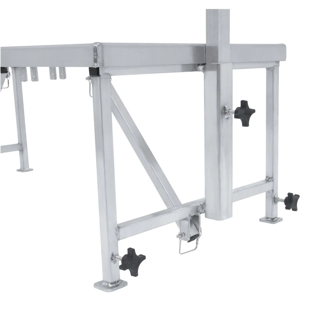 - Livestock trim stand offers heavy-duty aluminum cross bars to support the wire mesh floor